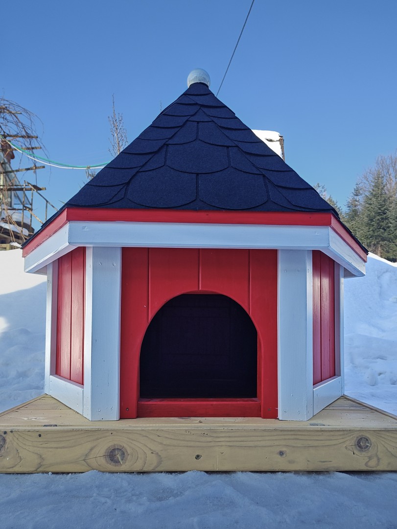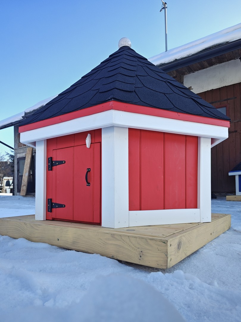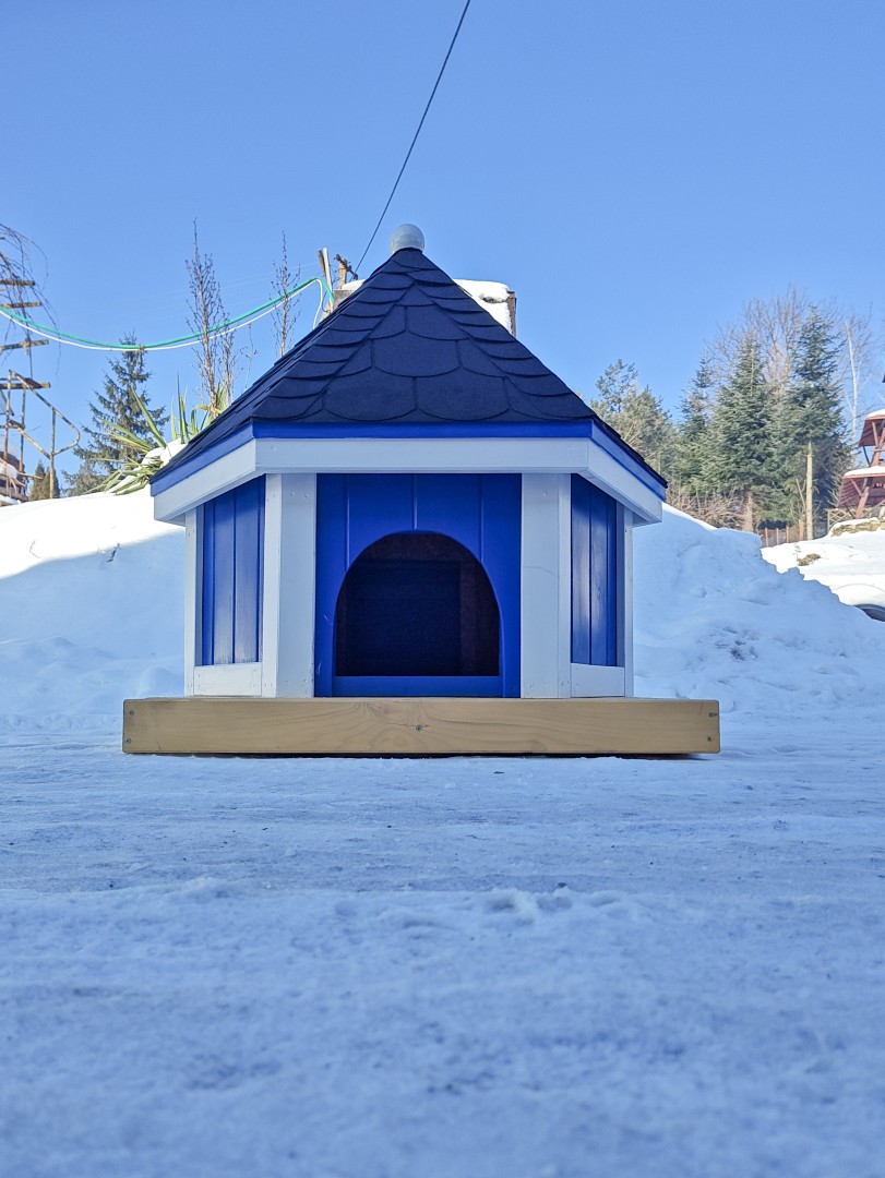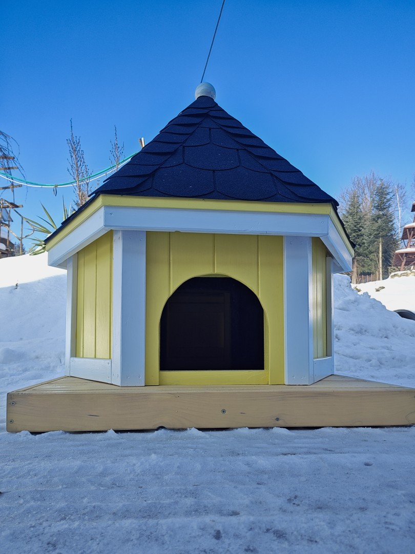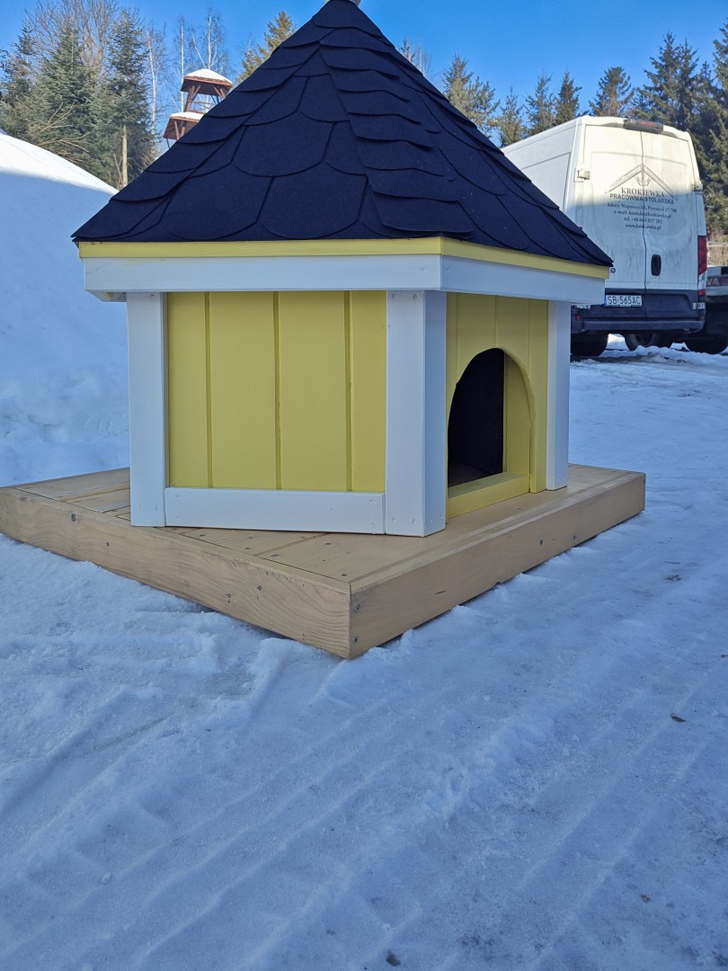 - domek wykonany na podstawie o wymiarach 1 x 1 m