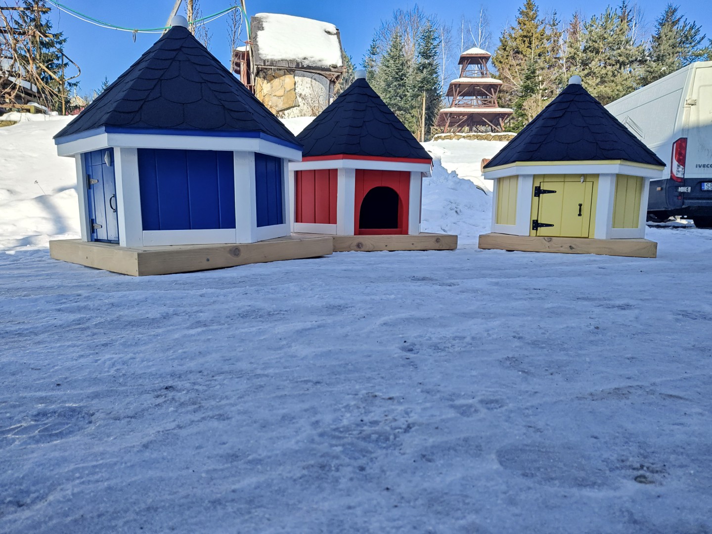 Możliwość zmiany kolorów domku oraz pokrycia dachu.